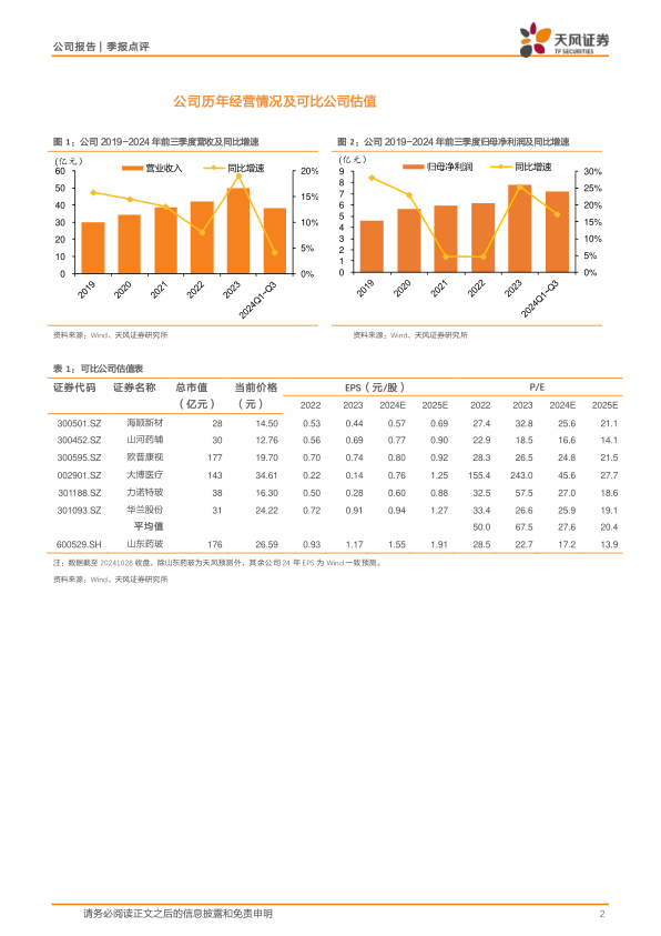 公司年中分红拟派发现金红利约2亿元,分红比例约41.90%,对应每股股息约0.3元,股息率1.2%。我们认为随着中硼硅渗透率持续提升,下游需求有望保持高景气,而原材料价格下降、公司产品结构的调整亦有利于盈利能力进一步提升,继续看好公司成长性。维持24-26年归母净利润预测10.3/12.7/15.0亿元,参考可比公司,给予公司24年21倍PE,对应目标价32.54元,维持“买入”评级。