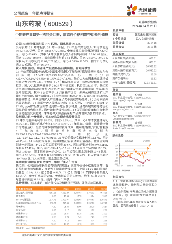 基于公司强劲的增长动能、持续修复的盈利能力以及优异的财务表现,天风证券维持对山东药玻的“买入”评级。