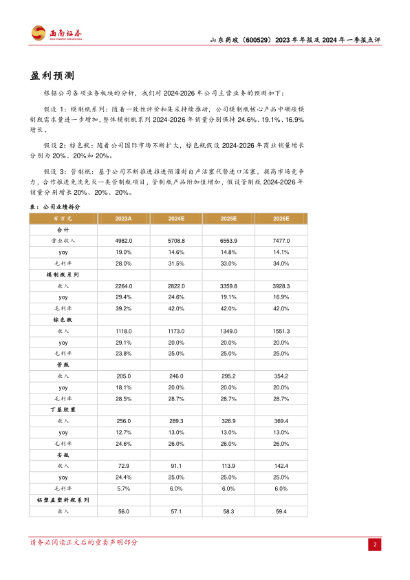 本报告对山东药玻(600529)2023年年报及2024年一季报进行了深入分析,核心观点如下:
