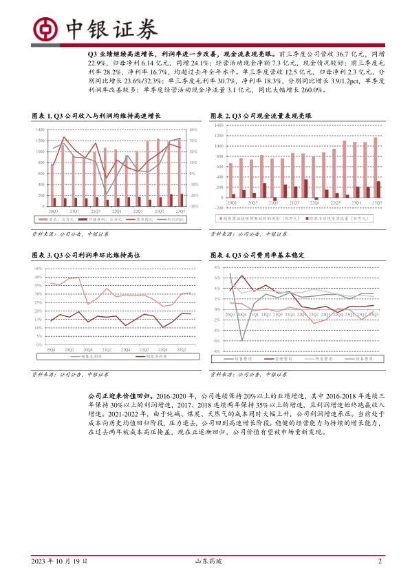 山东药玻于2023年10月18日发布的三季报显示,公司业绩继续保持高速增长,利润率进一步改善,现金流表现亮眼。