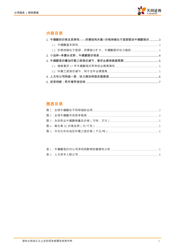 报告预计,牛磺酸价格上涨将为永安药业带来显著的业绩弹性。简单测算显示,每吨牛磺酸提价10%将增厚公司业绩约2000万元。随着2017年一年期订单以新的价格续签(预计提价幅度超过10%),公司全年牛磺酸业务贡献有望达到1.6亿元。根据敏感性分析,牛磺酸提价10%-20%可增厚净利润2850-5700万元。
