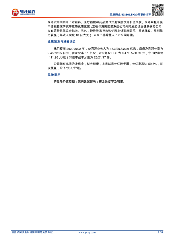 灵康药业2019年年度报告显示,公司在营收略有下滑的情况下,归母净利润和扣非净利润分别实现了10.34%和27.08%的稳健增长。这主要得益于2018年生产线改造完成后,主力产品如头孢呋辛钠、盐酸头孢甲肟、盐酸托烷司琼和丙氨酰谷氨酰胺的产量均大幅回升,增幅均超过32%,巩固了公司在消化系统、肠外营养和抗感染等核心产品线的市场地位,多个品种市场份额位居国内前三。公司积极应对医药政策变化,推进仿制药一致性评价和新药注册,并前瞻性地布局高毛利新品种(如市场空间超300亿的注射用石杉碱甲)和大健康产业(包括博鳌超级医院、健康保险公司及华西上锦南府医院),为未来增长提供多元动力。鉴于公司健康的财务状况、充沛的净现金流以及高达59.5%的分红率,粤开证券首次覆盖并给予“买入”评级,预测公司未来三年业绩将持续增长。