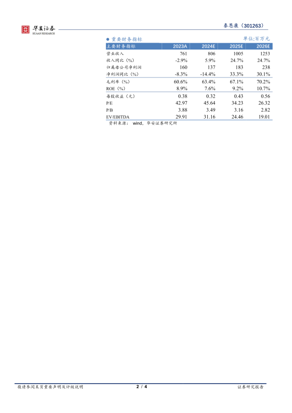 华安证券维持对泰恩康的“买入”评级。根据最新预测,公司2024-2026年的营业收入预计分别为8.06亿元、10.05亿元和12.53亿元,同比增速分别为5.9%、24.7%和24.7%。归属于母公司净利润预计分别为1.37亿元、1.83亿元和2.38亿元,同比增速分别为-14.4%、33.3%和30.1%。对应2024-2026年的市盈率(PE)分别为46倍、34倍和26倍。尽管2024年净利润预计有所下降,但2025年和2026年将恢复强劲增长。
