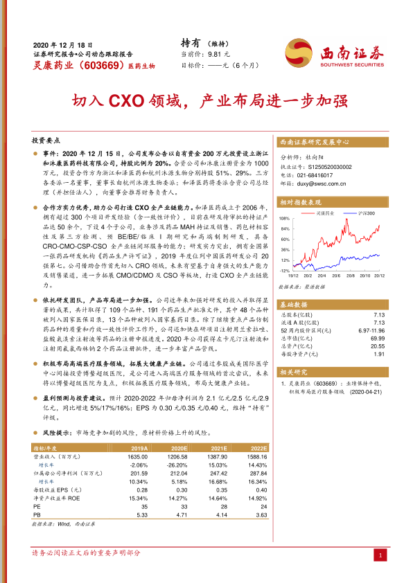 合作方实力优秀,助力公司打造CXO全产业链能力。和泽医药成立于2006年,拥有超过300个项目开发经验(含一致性评价),目前在研及待审批的持证产品达50余个,下设4个子公司,业务涉及药品MAH持证及销售、药包材相容性及第三方检测、预BE/BE/临床I期研究和高端制剂研发,具备CRO-CMO-CSP-CSO全产业链闭环服务的能力;研发实力突出,拥有全国第一张药品研发机构《药品生产许可证》,2019年度位列中国医药研发公司20强第七。公司借助合作首先切入CRO领域,未来有望基于自身强大的生产能力及销售渠道,进一步拓展CMO/CDMO及CSO等板块,打造CXO全产业链能力。