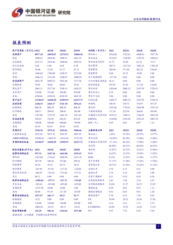 报告提供了公司2022-2025年的主要财务指标预测,包括营业收入、净利润、毛利率、EPS、PE、PB、PS等。