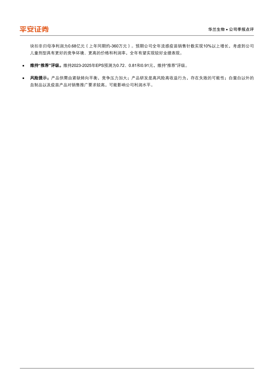 风险提示:产品供需由紧缺转向平衡,竞争压力加大;产品研发是高风险高收益行为,存在失败的可能性;白蛋白以外的血制品以及疫苗产品对销售推广要求较高,可能影响公司利润水平。