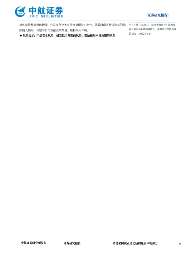 风险提示:产品安全风险、研发低于预期的风险、浆站拓展不及预期的风险