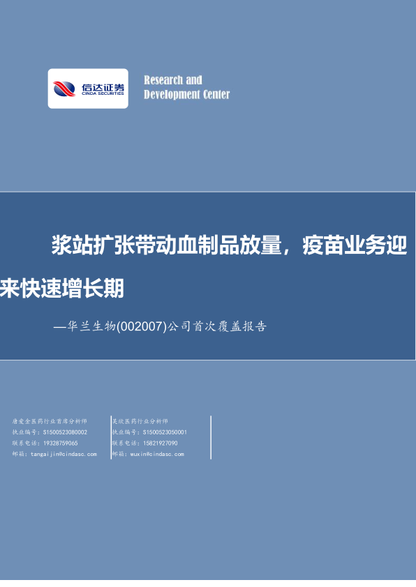 公司首次覆盖报告:浆站扩张带动血制品放量,疫苗业务迎来快速增长期