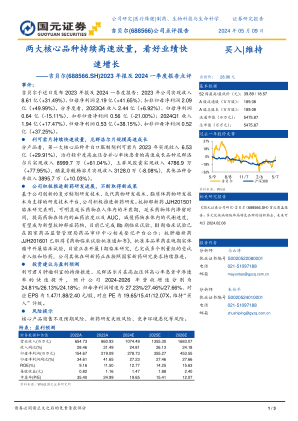 本报告对吉贝尔2023年年报及2024年一季度报进行了深入分析,公司核心品种利可君片和尼群洛尔片驱动业绩增长,新药研发取得积极进展。