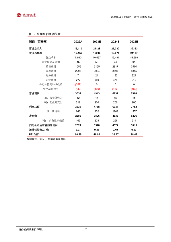 本报告对爱尔眼科(300015)2023年中报进行了深度分析,核心观点如下: