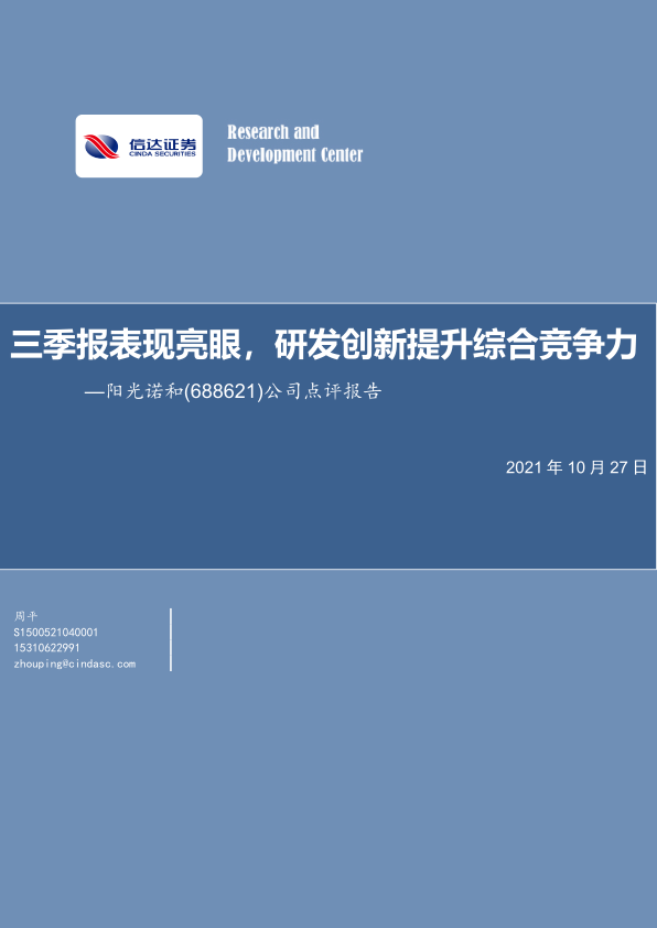公司点评报告:三季报表现亮眼,研发创新提升综合竞争力