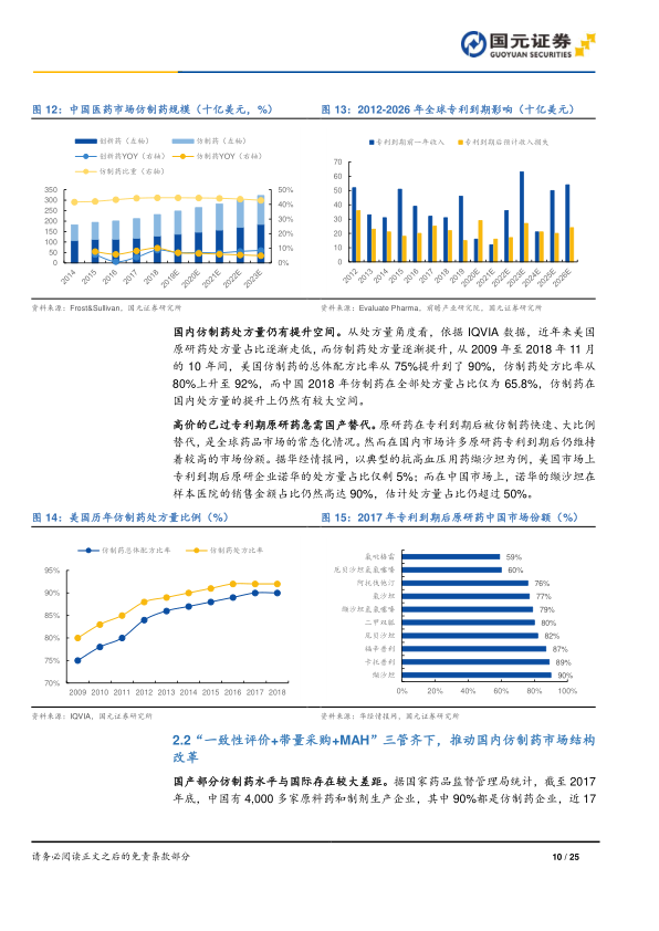 新一轮专利悬崖临近,仿制药研发热潮再起;国内仿制药处方量仍有较大提升空间