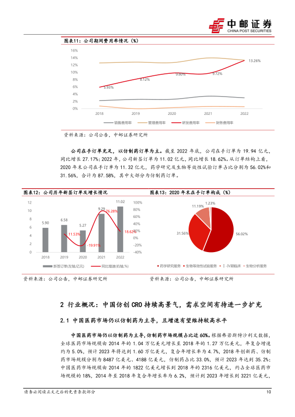战略布局CDMO业务,实现“CRO+CDMO”一体化协同发展。公司布局CDMO业务后,协同效应将主要体现在以下两个方面:(1)业务向产业链下游拓展,将降低公司自研项目研发成本,且可自主安排生产进度,利于公司提高研发效率;(2)打造“临床前研究+临床研究+定制化生产”一体化综合服务体系,打通药物研发和生产全流程服务,助力公司前端受托CRO订单向后端生产导流,同时在自研项目技术成果转化上提前锁定后续订单,增强公司议价能力。