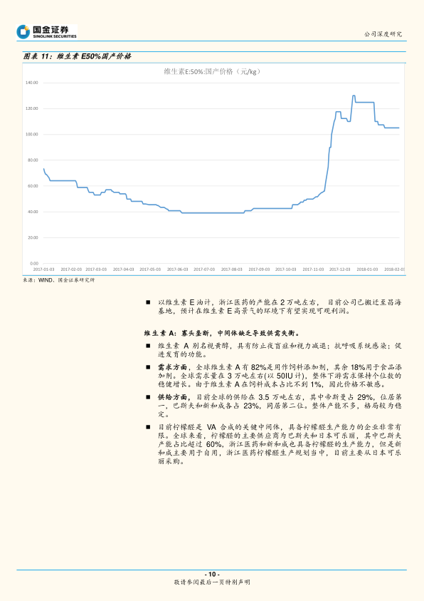 浙江医药作为全球领先的维生素生产商之一,其生命营养品板块主要涵盖维生素E和维生素A系列产品。公司在维生素E产量上居全球第一(2016年市场份额27%),维生素A产量居全球第三(2016年市场份额23%)。维生素业务的技术壁垒高,长期形成寡头竞争格局。
