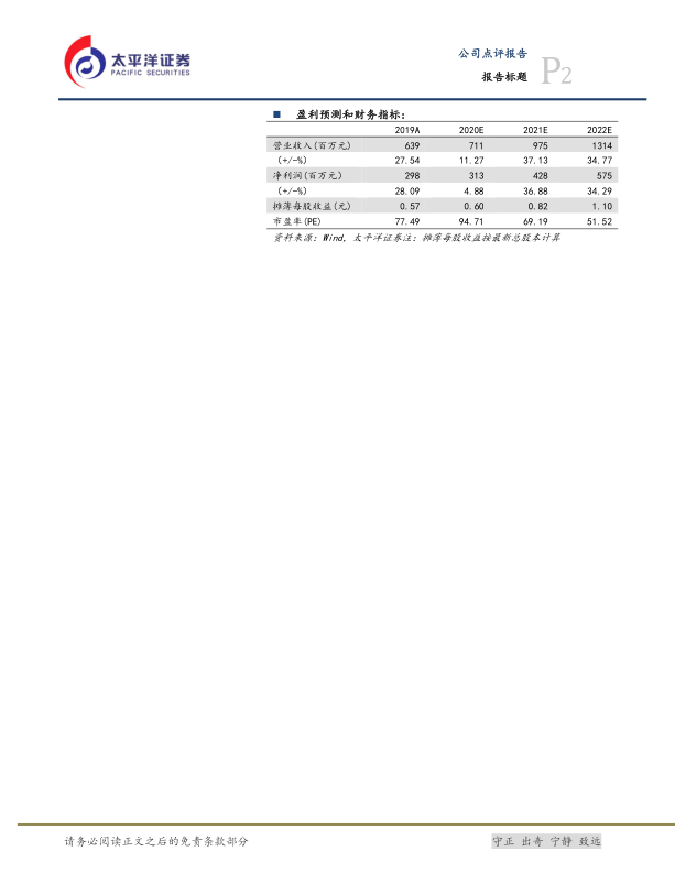 | 项目 | 2019A | 2020E | 2021E | 2022E |