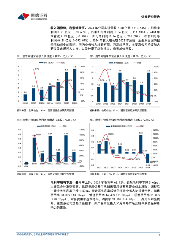 本报告对澳华内镜(688212.SH)2024年的财务业绩进行了分析,并对其未来发展前景进行了展望。核心观点如下: