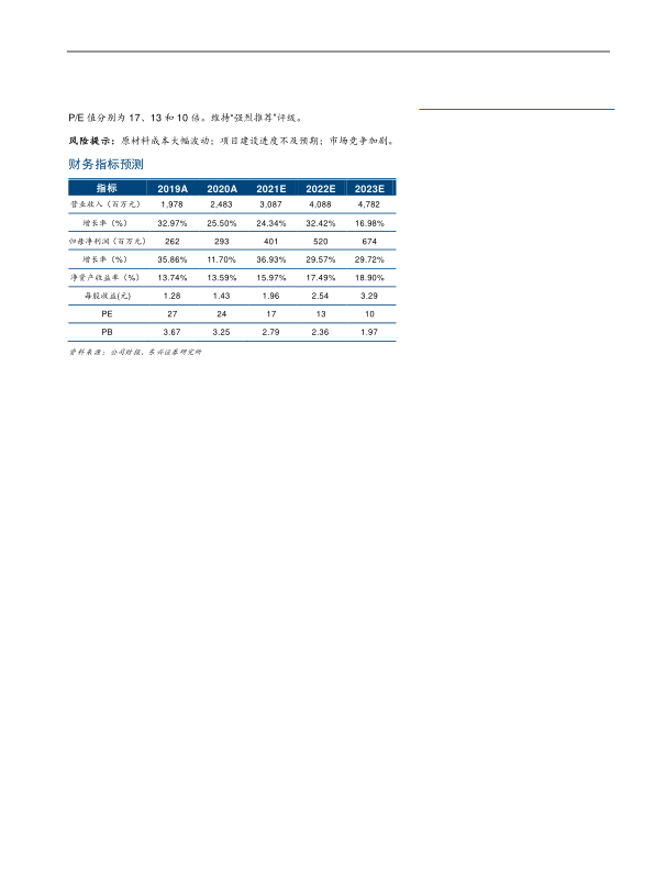 风险提示:原材料成本大幅波动;项目建设进度不及预期;市场竞争加剧。