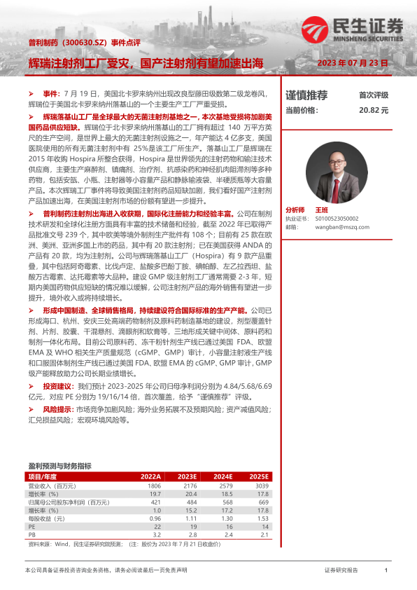 普利制药(300630)