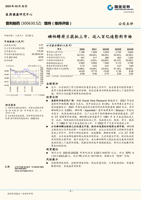基于对公司未来盈利能力的预测和市场前景的分析,国金证券维持对普利制药的“增持”评级,但同时也提示了相关风险。