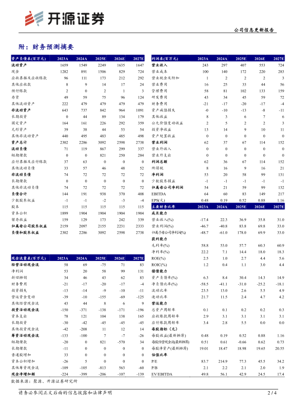 2024年公司实现营业收入2.97亿元,同比+22.26%;归母净利润0.21亿元,同比-61.04%;扣非归母净利润656万元,同比-81.03%。2024年公司海外业务增长势头依然强劲,产品销售境外收入相较上年同期增幅达到163.10%。单看2024Q4,公司实现营收0.81亿元,同比+13.93%,环比+12.65%。因受固定成本增加、计提资产减值及税率变化的影响,2024年公司利润端下滑明显。公司有望于2025年重新拿到高新技术企业资质。我们维持2025-2026年、并新增2027年盈利预测,预计归母净利润分别为0.59/0.99/1.32亿元,EPS为0.52/0.88/1.16元,当前股价对应P/E分别为77.3/45.5/34.2倍,维持“买入”评级。