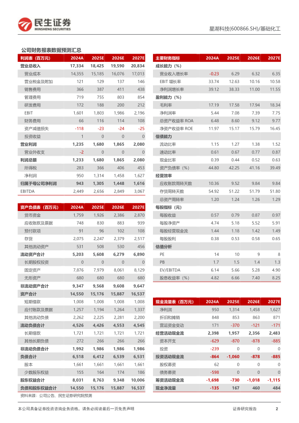 民生证券研究院预计公司2025-2027年归母净利润分别为13.05亿元、14.48亿元、16.16亿元,对应EPS分别为0.79元、0.87元、0.97元。以2025年4月22日收盘价计算,对应PE分别为10X、9X、8X。鉴于公司未来的成长空间,维持“推荐”评级。