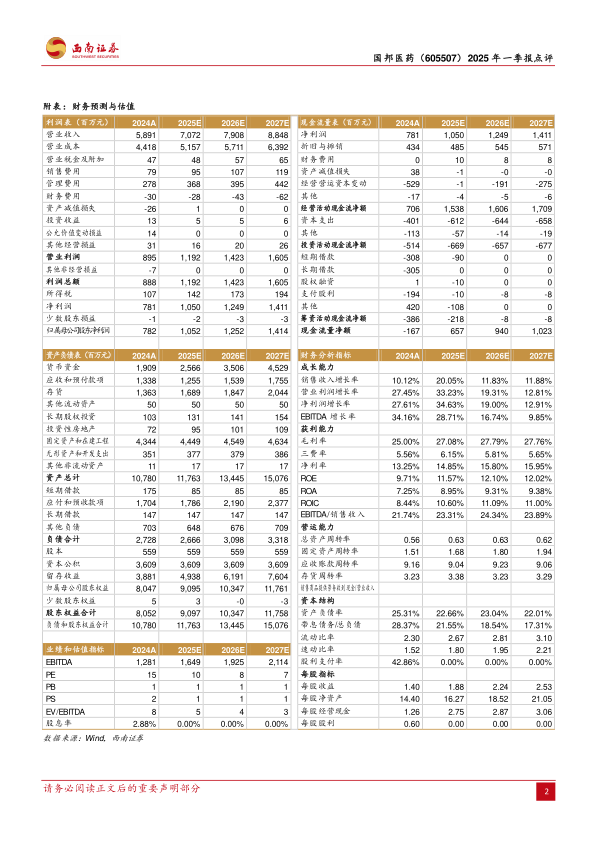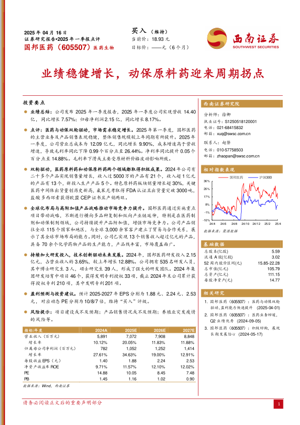 本报告对国邦医药(605507)2025年一季度业绩进行了分析,并维持“买入”评级。