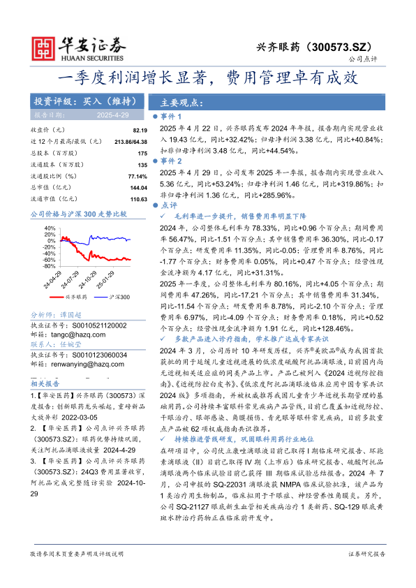 本报告对兴齐眼药的2024年年报和2025年一季报进行了深入分析,核心观点如下: