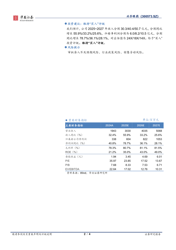 兴齐眼药凭借其在眼科用药领域的领先地位和不断增强的产品竞争力,在一季度取得了显著的利润增长。公司通过有效的费用管理和持续的研发投入,进一步巩固了其行业地位。维持对公司“买入”的投资评级,但同时也需关注审批准入、行业政策和销售波动等潜在风险。