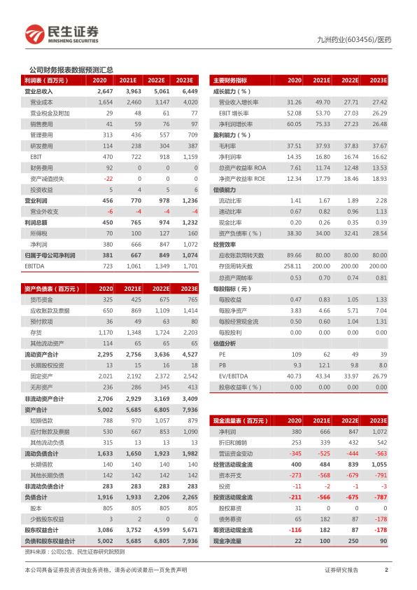 九洲药业(603456)