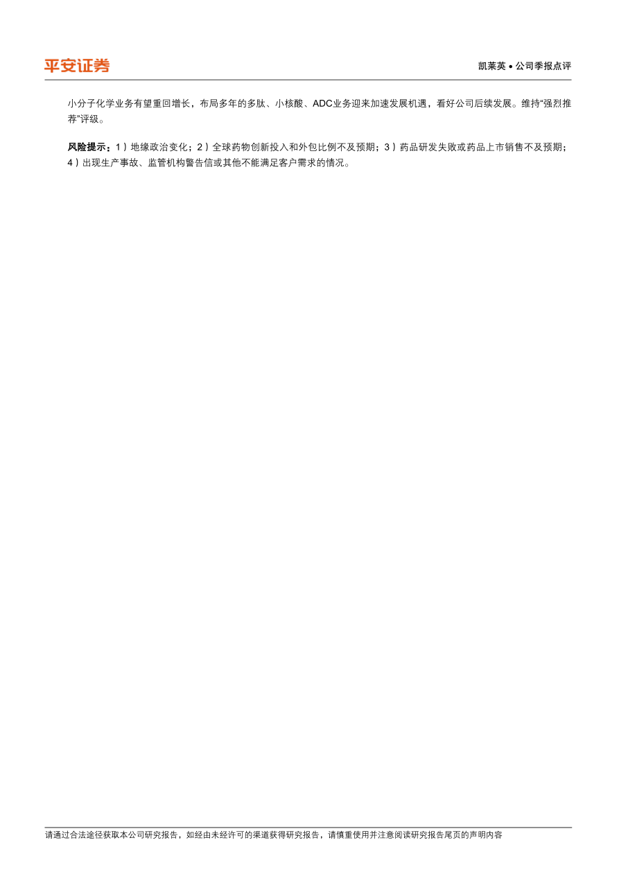 风险提示:1)地缘政治变化;2)全球药物创新投入和外包比例不及预期;3)药品研发失败或药品上市销售不及预期;4)出现生产事故、监管机构警告信或其他不能满足客户需求的情况。