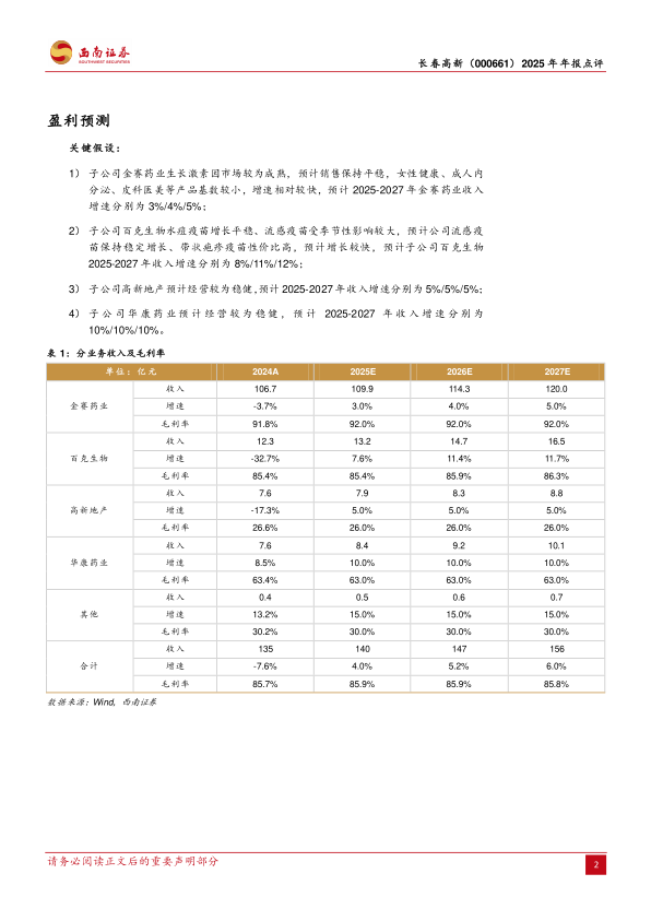 长春高新2024年业绩受到多重因素影响,出现同比下降。但公司各业务板块表现分化,金赛药业的新品和海外市场、百克生物的优势疫苗产品、华康药业的稳健增长以及高新地产的积极去库存策略,都为公司未来的发展提供了支撑。维持对公司未来盈利的预测,但同时也需关注可能存在的风险因素,以便更全面地评估公司的投资价值。