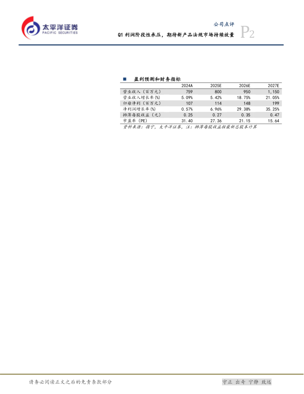 Q1利润阶段性承压,期待新产品法规市场持续放量