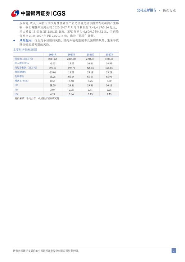 风险提示:行业竞争加剧的风险、国内外装机进展不及预期的风险、集采导致降价幅度超预期的风险。