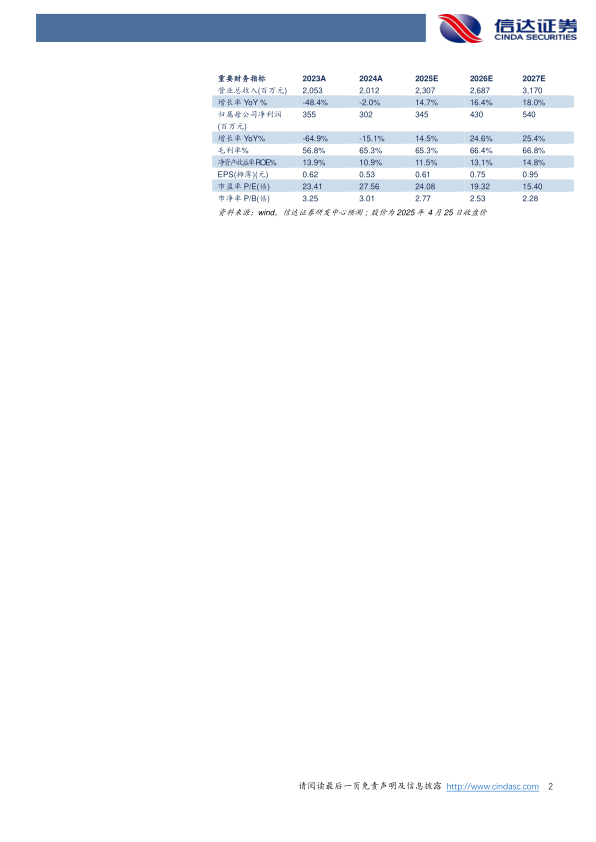 盈利预测:我们预计公司2025-2027年营业收入分别为23.07、26.87、31.70亿元,同比增速分别为14.7%、16.4%、18.0%,实现归母净利润为3.45、4.30、5.40亿元,同比分别增长14.5%、24.6%、25.4%,对应2025年4月25日股价PE分别为24、19、15倍。