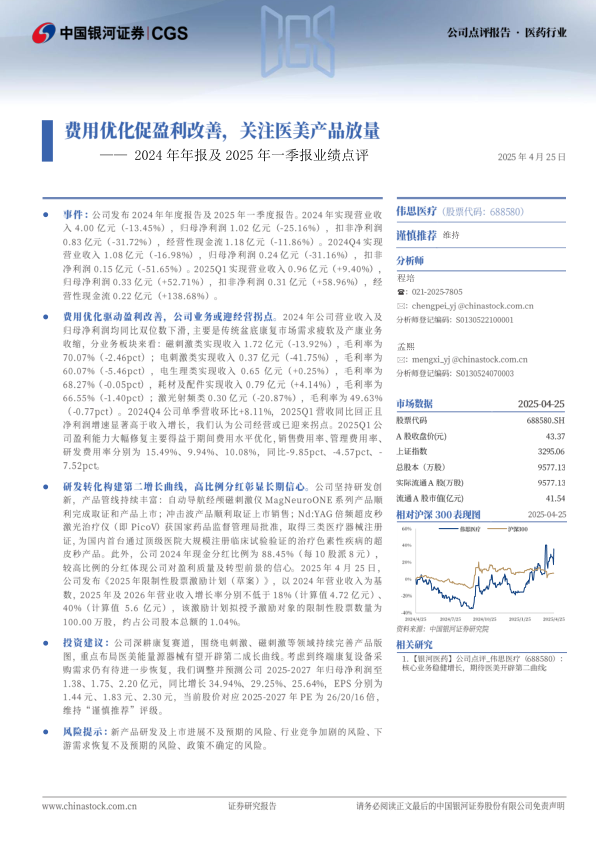2024年年报及2025年一季报业绩点评:费用优化促盈利改善,关注医美产品放量