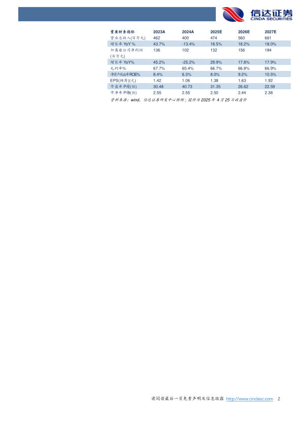 盈利预测:我们预计公司2025-2027年营业收入分别为4.74、5.60、6.61亿元,同比增速分别为18.5%、18.2%、18.0%,实现归母净利润为1.32、1.56、1.84亿元,同比分别增长29.9%、17.8%、17.9%,对应2025年4月25日收盘价,PE分别为31、27、23倍。