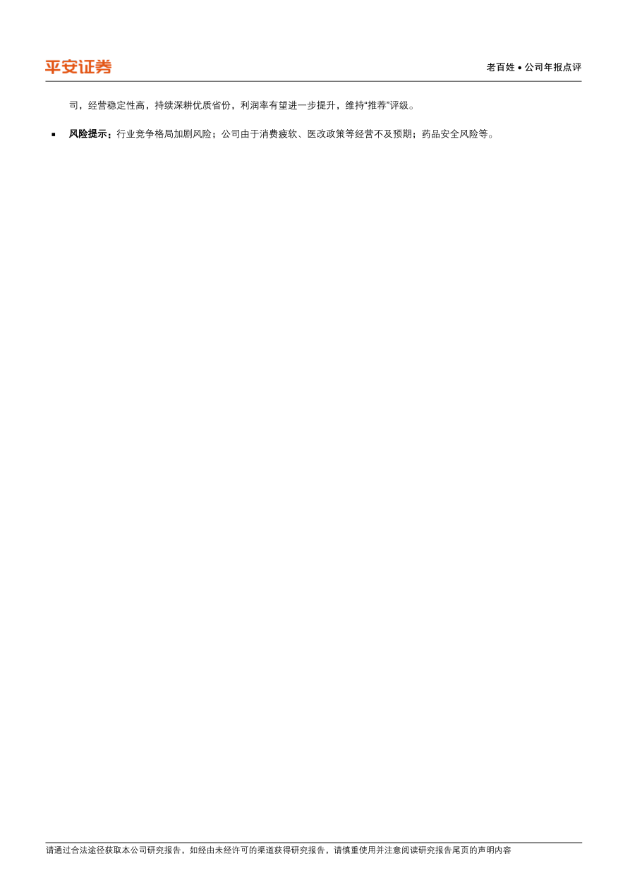 风险提示:行业竞争格局加剧风险;公司由于消费疲软、医改政策等经营不及预期;药品安全风险等。