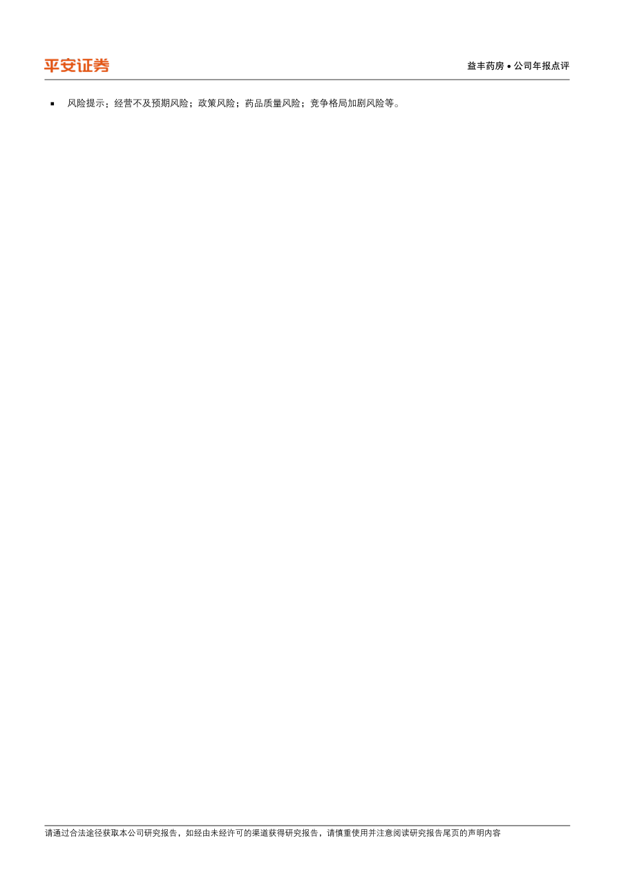 风险提示:经营不及预期风险;政策风险;药品质量风险;竞争格局加剧风险等。