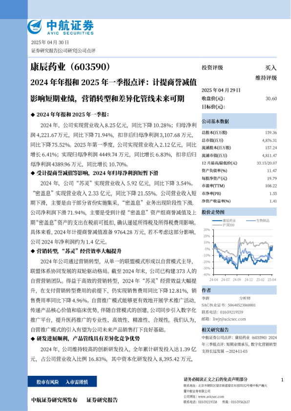 2024年年报和2025年一季报点评:计提商誉减值影响短期业绩,营销转型和差异化管线未来可期