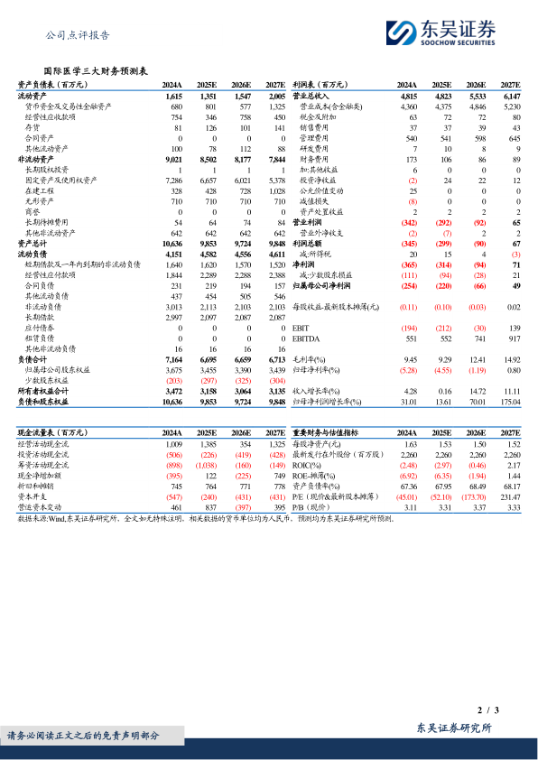 本报告的核心观点是,国际医学在2024年通过稳健的业务扩张和精细化管理,有效控制了亏损,并在某些核心业务上取得了显著进展。尽管2025年一季度业绩受到政策影响有所承压,但公司通过提升经营质量和优化成本结构,展现出持续改善的潜力。