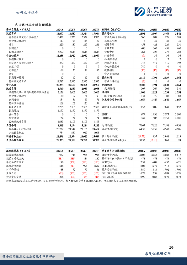 报告维持对九安医疗“买入”评级,并对公司2025-2027年的营收和归母净利润进行了预测。尽管短期业绩受到一定影响,但长期来看,公司的渠道优势和新品成长性仍然值得期待。