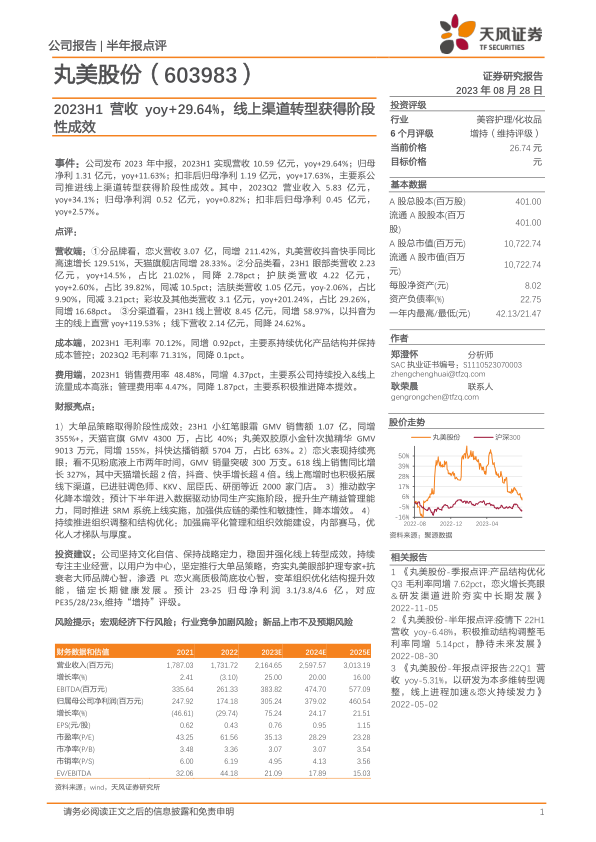 本报告对丸美股份2023年中报进行了深入分析,核心观点如下: