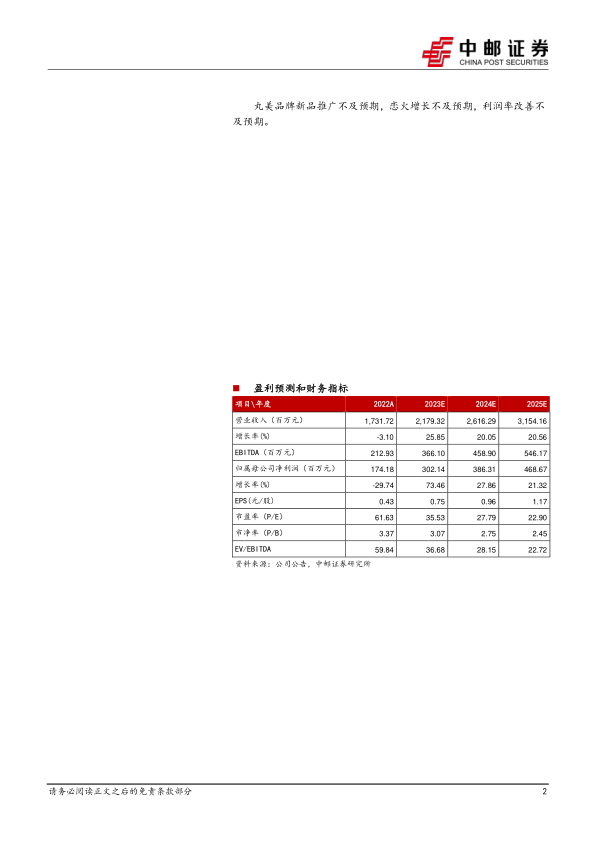 盈利预测及投资建议: 我们预计公司 23-25 年归母净利润分别为3.0 亿元、 3.9 亿元、 4.7 亿元,对应增速分别为 73%/28%/21%,对应PE 分别为 36 倍/28 倍/23 倍,我们看好公司恋火高增长, 期待主品牌调整发力, 维持“买入”评级。