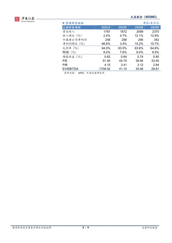 作为国内稀缺的中高端护肤品牌,丸美深耕眼部护肤的同时,由眼及面推出面部护肤品类,提高公司的增长天花板。公司线下渠道匹配公司中高端定位,线上渠道调整提高运营效率,抖音、快手等新兴平台拓展使品牌触及更多年轻消费者。我们预计公司2022~2024年EPS分别为0.64、0.74、0.85元/股,对应当前股价PE分别为45、39、34倍。维持“增持”评级。