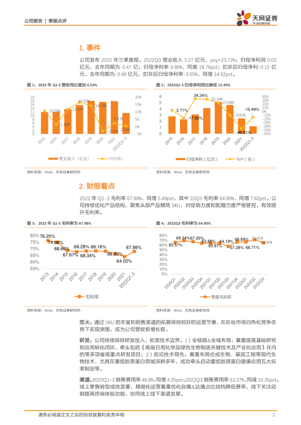 产品结构优化Q3毛利率同增7.62pct,恋火增长亮眼&研发渠道进阶夯实中长期发展