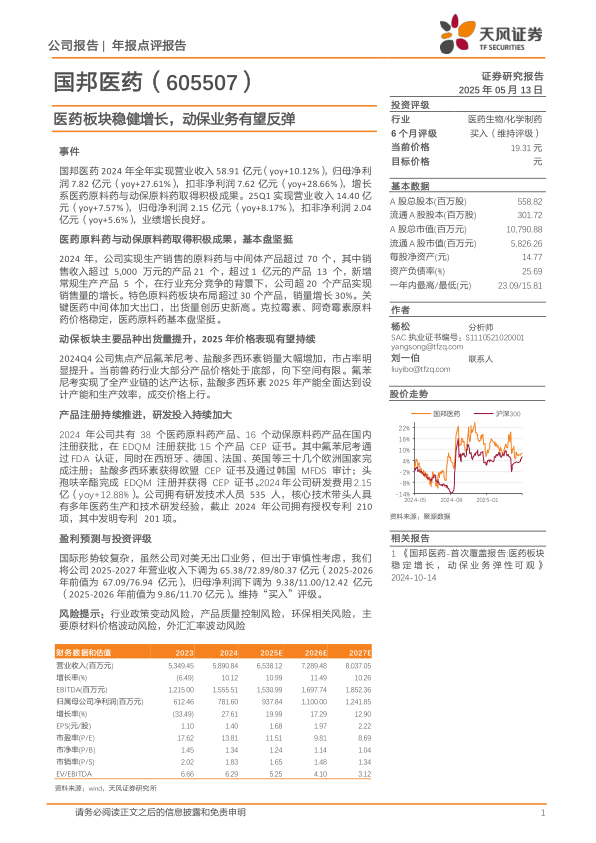 本报告对国邦医药(605507)2024年全年及2025年一季度的业绩进行了分析,并维持“买入”评级。