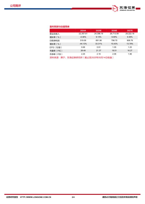 | 市盈率(P/E) | 28.48 | 21.37 | 18.51 | 16.27 |