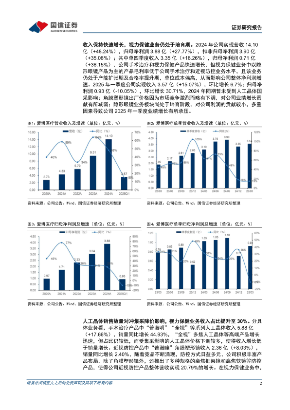 爱博医疗在2024年实现了营收的显著增长,但受视力保健业务(特别是隐形眼镜)处于培育期、毛利率较低以及人工晶体集采等因素影响,净利润增速有所放缓,并在2025年第一季度面临短期业绩压力。然而,公司在人工晶体销售放量、近视防控产品线多元化以及隐形眼镜业务高速增长方面表现出色,后者已成为重要的收入贡献来源。同时,公司持续高强度研发投入,成功推出首款国产有晶体眼人工晶状体“龙晶”,填补了国内空白,并拥有丰富的在研管线,展现出强大的创新能力和平台化发展潜力。尽管短期盈利预测有所调整,但基于其产品创新、市场拓展和进口替代的巨大空间,公司长期发展前景依然乐观,维持“优于大市”评级。