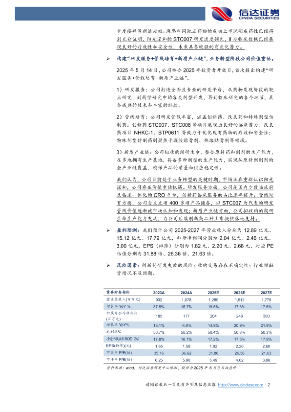 构建“研发服务+管线培育+新质产业链”,业务转型阶段公司价值重估。2025年5月14日,公司举办2025年投资者开放日,首次提出构建“研发服务+管线培育+新质产业链”。