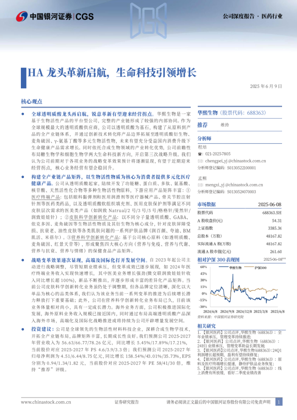 投资建议:公司是全球领先的生物活性材料科技企业,深耕合成生物学技术,开拓全产业链布局,品牌矩阵丰富,长期成长性良好。我们预测公司2025-2027年营业收入为56.63/66.77/78.26亿元,同比增长5.45%/17.89%/17.21%,当前股价对应2025-2027年PS4.6/3.9/3.3倍;我们预测公司2025-2027年归母净利润为4.51/6.44/8.75亿元,同比增长158.54%/43.01%/35.73%,EPS分别为0.94/1.34/1.82元,当前股价对应2025-2027年PE58/41/30倍,维持“推荐”评级。